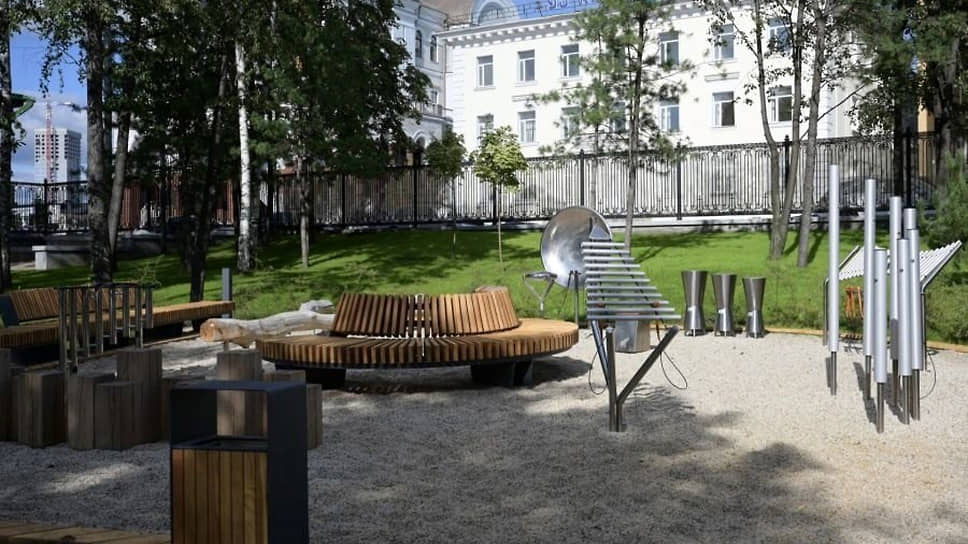 На воротах парка изображены мотивы из произведений уральского писателя Павла Бажова, а между Камерным театром и музеем «Литературная жизнь Урала XIX века» воссоздали деревянную беседку, в которой любил проводить время писатель Дмитрий Мамин-Сибиряк.