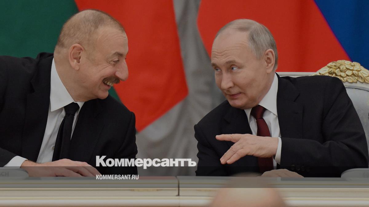Ильхам Алиев (слева) и Владимир Путин в апреле 2024 года