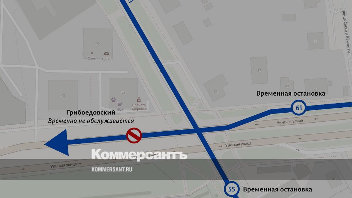 С 27 по 29 августа 2024 года в связи с дорожными работами из маршрутов №33, №55, №61, №69 и №81 будет временно исключена остановка «Грибоедовский».