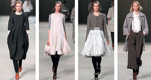 Большинство fashion-критиков, разозлившись на Дом Chloe из-за разрыва с чудесным дизайнером Фиби Фило, сильно ругали эту коллекцию, придуманную группой безымянных авторов. Разрыв действительно огорчителен, но коллекция получилась очень милая и при этом практичная. Стиль Фиби Фило настолько чист и внятен, что его легко имитировать. Девичьи просторные и короткие сарафанчики с подрезами под грудью, из серенького твида и фланели, наивные белые блузки с бантами. Прелестные округлые минималистические пальто. На вечер ставшие узнаваемыми платья Chloe — силуэта baby-doll, из легкого шифона, с пластронами в защипах и мелких рюшах. В сочетании с тяжелыми полуботинками на грубой подошве и высоком каблуке и плотными черными чулками такие платья очень актуальны.