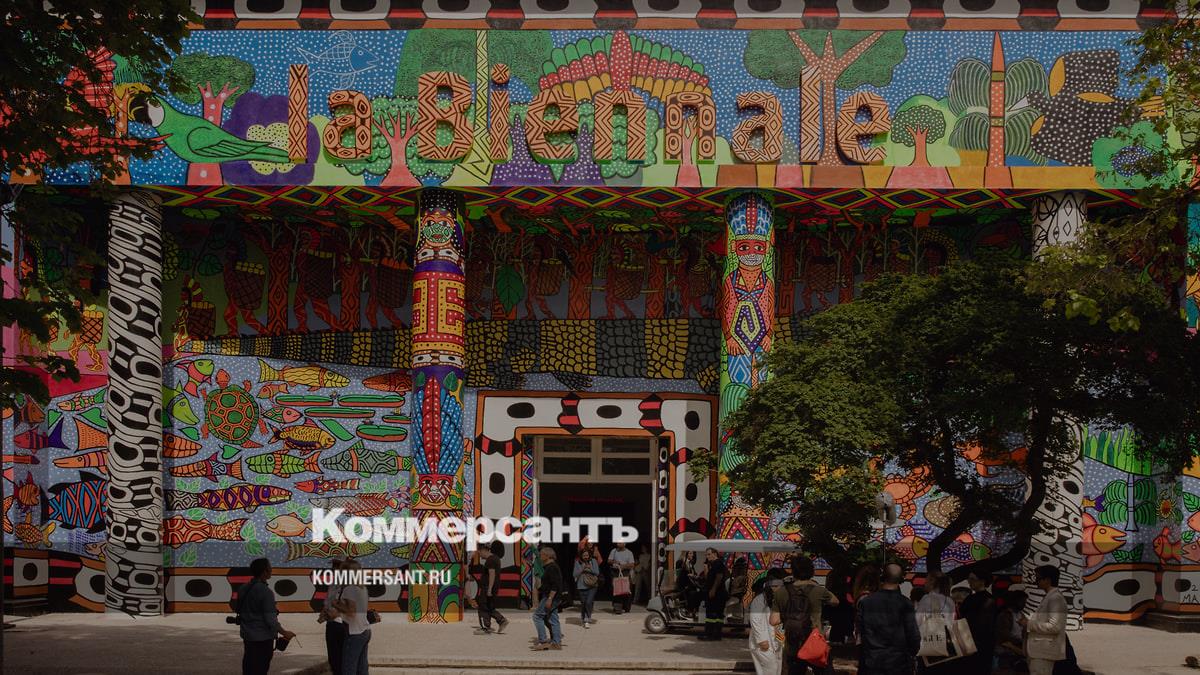 Практически первое, что бросается в глаза в исторической части биеннальных выставок, в Джардини,— это центральный павильон, или Дворец искусств (Palazzo Pro Arte), построенный в 1895 году в неоклассическом стиле, а в 2024 году полностью покрытый гигантской красочной фреской MAHKU — группы художников из Бразилии, представителей коренного народа Huni Kuin («настоящие люди», или «люди с традициями») из штата Акри. В окружении стай птиц и косяков рыб предки этого народа путешествуют на спине аллигатора через Берингов пролив, из Азии в Америку, чтобы навсегда обрести там свой дом. Но эта жизнерадостная и оптимистичная иллюстрация — только начало истории коренных народов (или «аборигенов», как их называли европейцы в момент открытия тех или иных земель), которая на самом деле полна трагических событий, когда «свои» стали «чужими» на своей же земле.