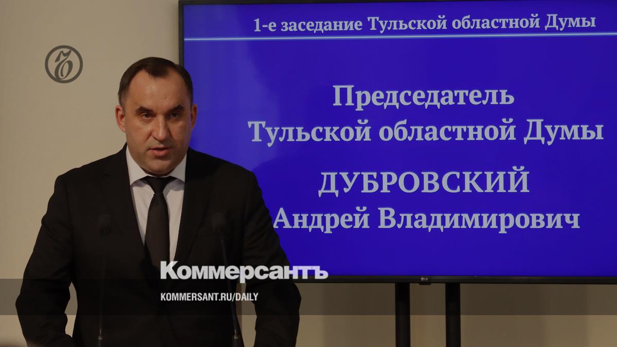 Наделенный полномочиями председателя Тульской облдумы депутат Андрей Дубровский в прошлом созыве занимал должность заместителя председателя комитета по вопросам собственности и земельным отношениям и входил во фракцию «Единой России». 7 октября единоросс оказался единственным кандидатом, выдвинутым на пост спикера. Как ранее сообщал “Ъ”, по результатам сентябрьских выборов единороссы увеличили свое представительство в областном парламенте с 27 до 29 мест (всего их 36).