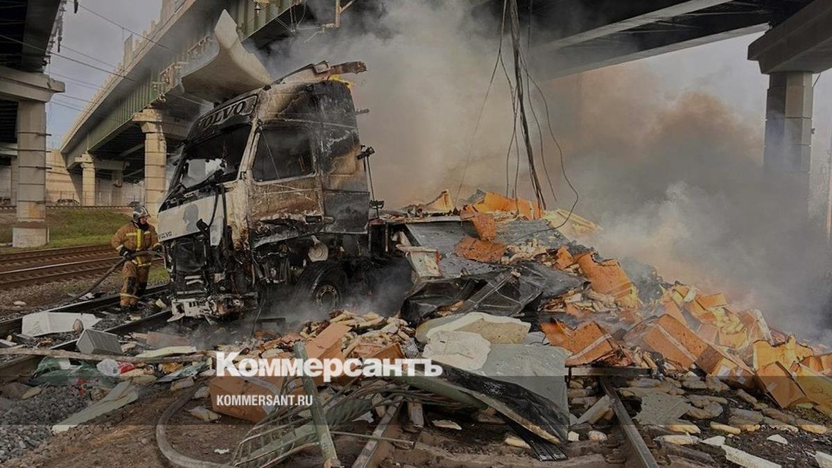 Фура упала на ж/д пути в Шушарах и загорелась, водитель скончался