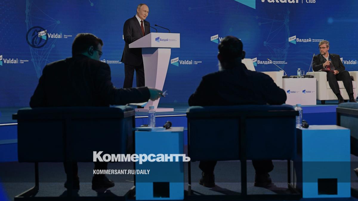 7 ноября президент России Владимир Путин поздним вечером приехал на Красную Поляну, где проходило заседание Валдайского клуба, и, рассказывает специальный корреспондент “Ъ” Андрей Колесников, поделился своими наблюдениями за ситуацией в мире, где, по его словам, идет глобальный конфликт между большинством населения планеты и мировым меньшинством, а также раскритиковал сам смысл существования НАТО и дал понять, что подлинным прототипом нового устройства мира является БРИКС. И вообще, настаивал, что именно сейчас наступает момент истины: каким будет этот новый мир.