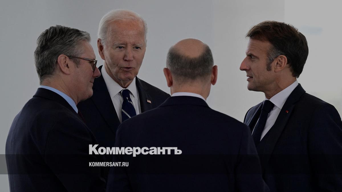 Премьер-министр Великобритании Кир Стармер, президент США Джо Байден, президент Франции Эмманюэль Макрон и канцлер Германии Олаф Шольц