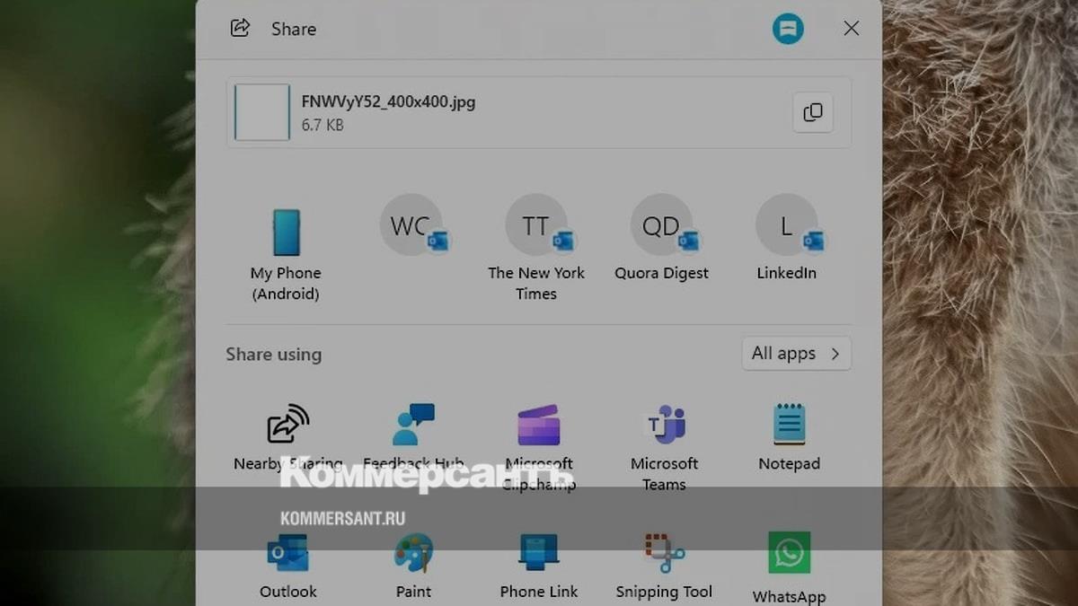 Кнопка «Поделиться» пока что есть не во всех приложениях, однако в Microsoft собираются исправить это. Ранее функция была доступна только в результатах поиска Windows. В настоящее время воспользоваться функцией «Поделиться» могут только участники программы Windows Insider, неизвестно, когда нововведение появится в общедоступной версии операционной системы.