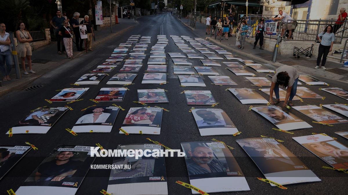 Родственники заложников Хамаса» разложили их фотографии перед резиденцией премьер-министра Израиля Биньямина Нетаньяху