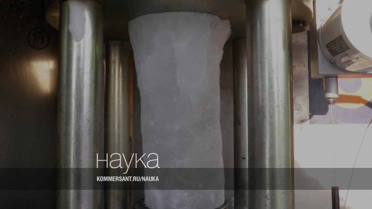 Проведение испытаний образца льда (керна) на сжатие.