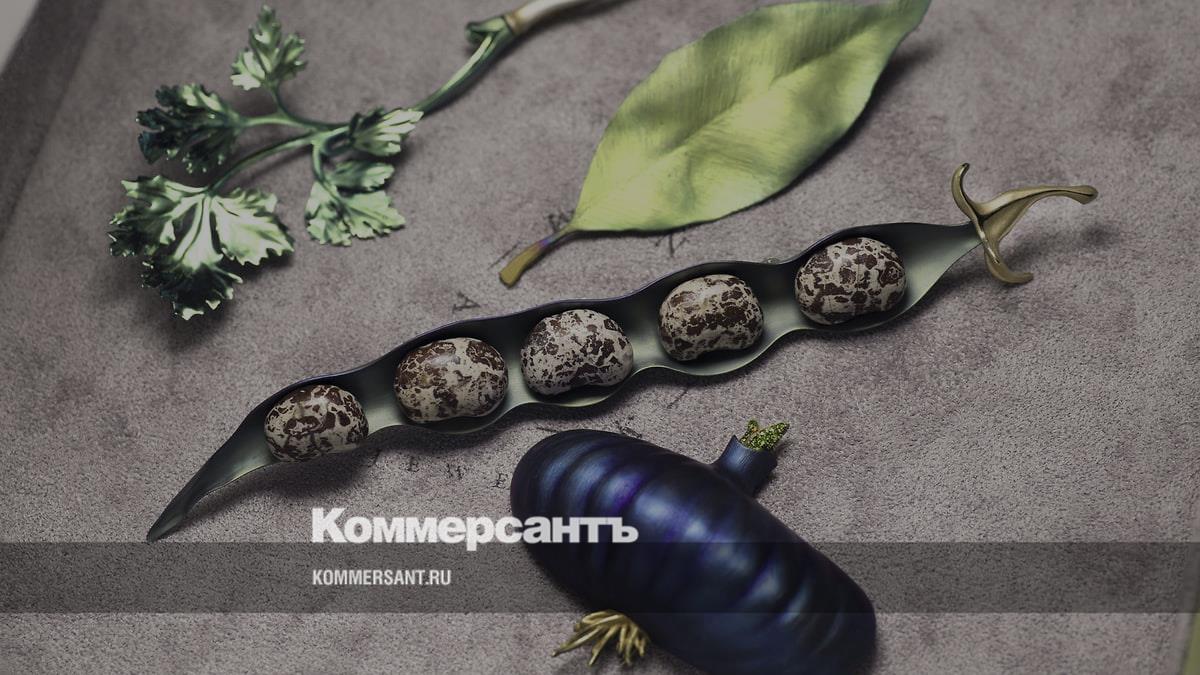 Спустя год в этом же музее прошла персональная выставка «Титанический труд» художника-ювелира Владимира Маркина, который способен создать в титане, драгоценных и поделочных камнях натуралистичного вида броши в виде осенних листьев или луковиц. В списке новинок Markin Fine Jewellery 2024 года — ювелирная ветка морошки, плод граната и стручок фасоли. «Возможно, и моя работа чтото добавляет к популярности этого вида аксессуара,— рассуждает Маркин.— Брошь — законченный арт-объект, создавая который я не беспокоюсь об усталости ушей или размере пальцев».