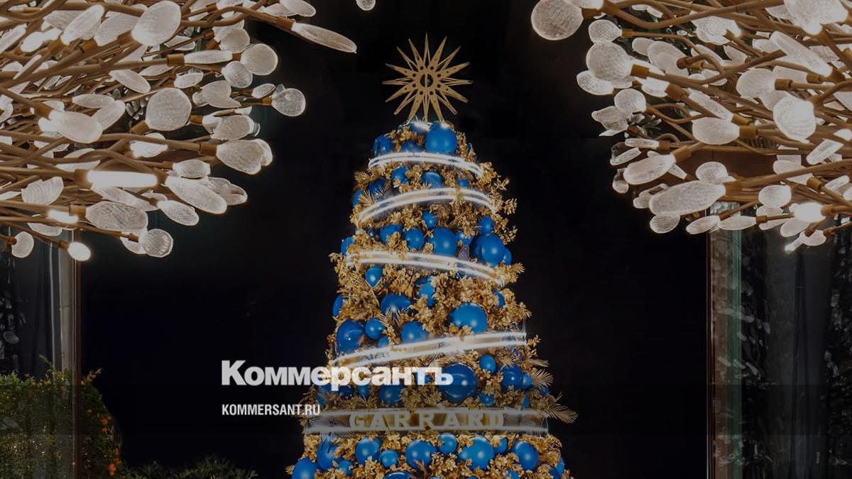 Старейший британский ювелирный дом Garrard оформил елку в лобби отеля дубайского Mandarin Oriental Jumeirah в Дубае. Синий цвет шаров — фирменный оттенок Garrard Blue