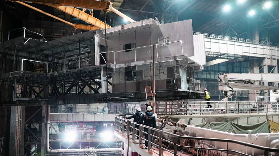 Процесс погрузки занял несколько часов, на производство блока рабочим необходимо от двух до трех месяцев, рассказал главный строитель завода «Красное Сормово» Альберт Мелконян.
