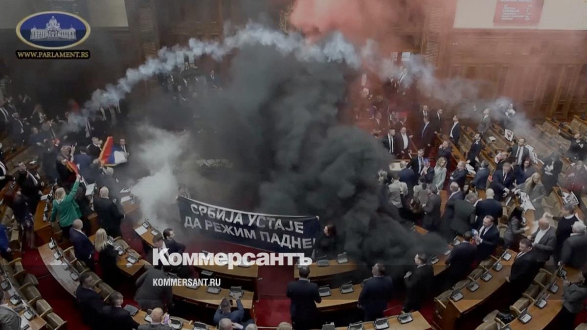 Депутаты оппозиционных партий Сербии попытались сорвать сессию Народной скупщины (однопалатного парламента) и зажгли цветные дымовые шашки в зале заседания, а также развернули транспарант с призывом к свержению президента республики Александра Вучича. Тем временем перед зданием парламента проходят акции протеста студентов.