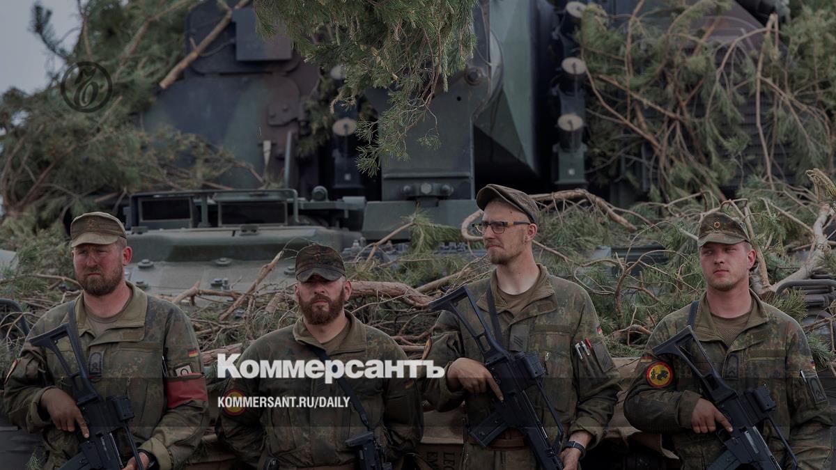 Военнослужащие немецкой армии с самоходной гаубицей PzH 2000 во время литовско-германских дивизионных международных военных учений «Гранд Квадрига 2024» на полигоне в Пабраде, 29 мая 2024 года