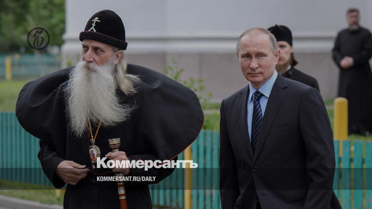 Президент России Владимир Путин (справа) и первоиерарх РПСЦ митрополит Корнилий
