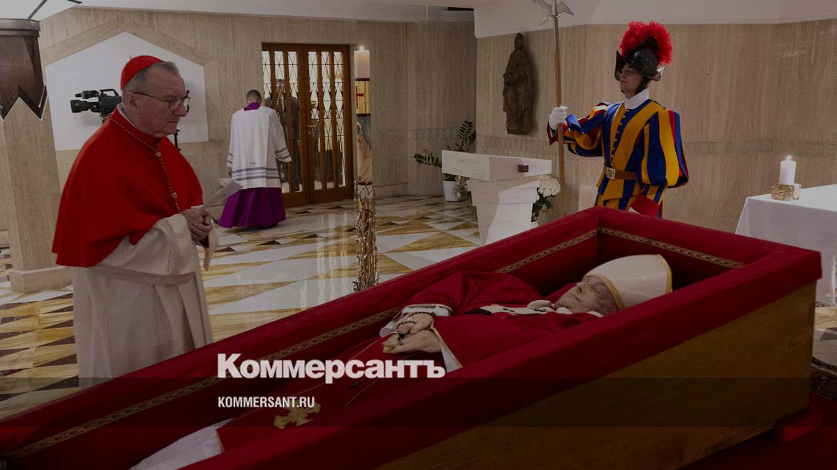 Пресс-служба Ватикана распространила фото умершего накануне папы римского Франциска в гробу. На снимках Франциск лежит в традиционном папском облачении и в белом головном уборе — митрое. Вокруг гроба стоит караул швейцарских гвардейцев. Рядом также находятся госсекретарь Святого престола кардинал Пьетро Паролин и кардинал-камерленго Кевин Фаррелл, который будет руководить процессом похорон.