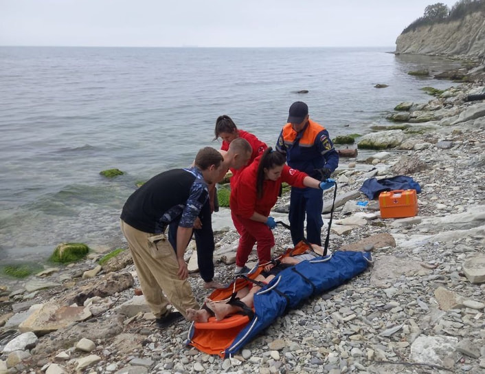 «Спасатели совместно с медиками скорой медицинской помощи (СМП) и очевидцами при помощи вакуумных носилок транспортировали пострадавшую девушку с берега моря в карету СМП»,— написал господин Одеров.