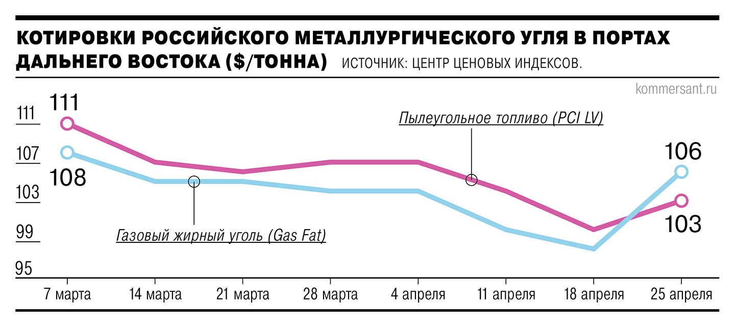 По данным директора ЦЦИ Евгения Грачева, до начала майских выходных в РФ российское пылеугольное топливо на условиях CFR Китай стоило $111–113 за тонну.