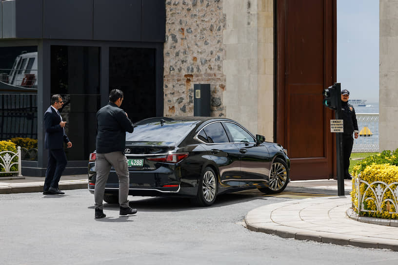 Автомобиль с членами российской делегации у дворца Долмабахче