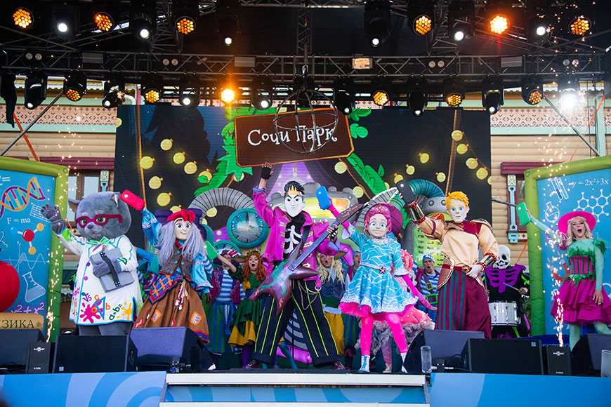 Основные события развернутся на Главной сцене, расположенной в Краю науки и волшебства. С 12:30 развлекать гостей будут популярные блогеры ALISATOKA, Елизавета Эль, SOFIKO Black2White и любимые герои Сочи Парка — Баба Яга, Кощей и Морская Царевна. Вместе они разыграют море ценных призов, среди которых годовой абонемент в Сочи Парк, проживание в отеле-замке Богатырь, пятизвездочном отеле на Курорте Красная Поляна, отеле Mantera Resort & Congress 5* и Сочи Парк Отеле, а также ужин в ресторане Brunello и vip-экскурсия по винодельне Шато де Талю.