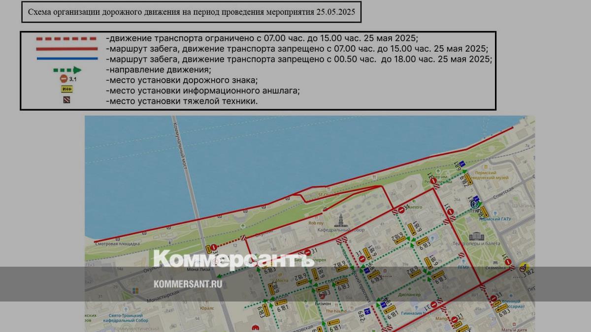 25 мая в центре Перми ограничат движение транспорта