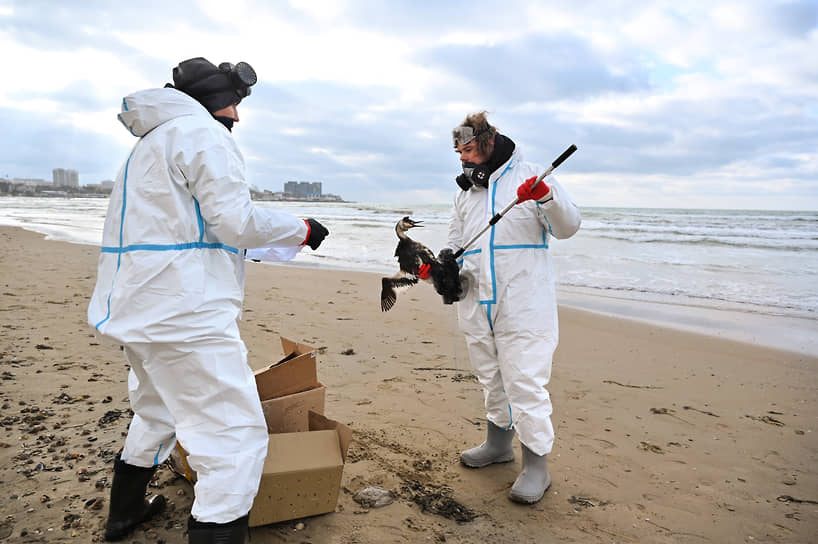 Волонтеры отмывают от мазута птиц