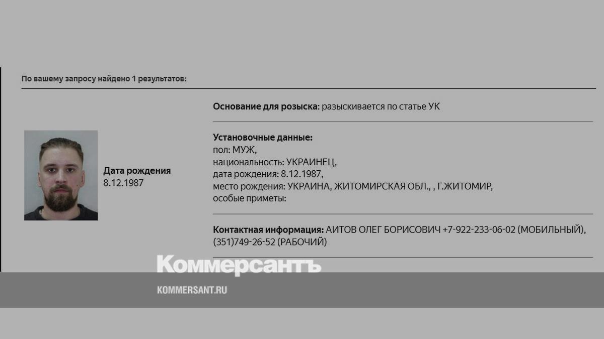 В базе федерального розыска МВД появилась карточка с именем Артема Тимофеева — предполагаемого участника атаки на военный аэродром «Белая» в Иркутской области. «РИА Новости» ранее писало, что он регистрировал на Украине бизнес, связанный с транспортными перевозками.