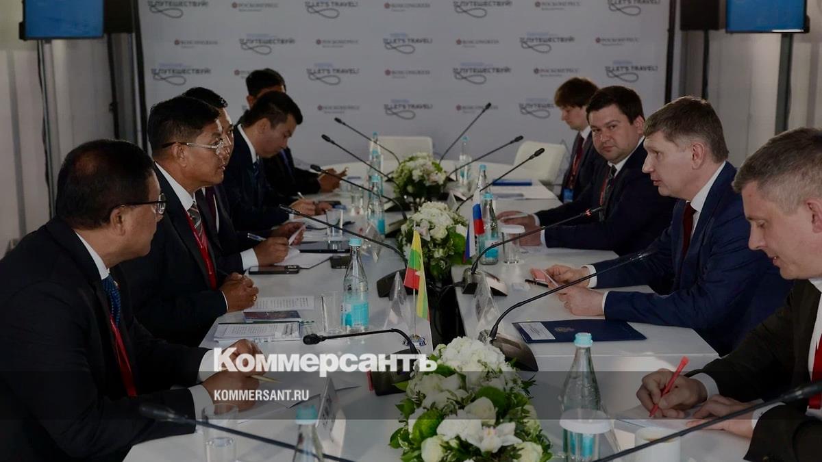 Глава Минэкономразвития России Максим Решетников провел встречу с министром гостиниц и туризма Мьянмы Чо Соу Вином. Встреча прошла в рамках международного туристического форума «Путешествуй!». Министры обсудили рост турпотока и предстоящую отмену визового режима между странами.