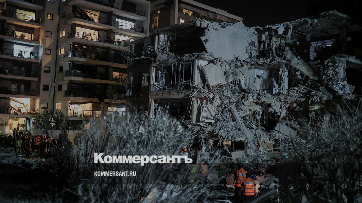 Последствия попадания ракеты в здание в Тель-Авиве, Израиль