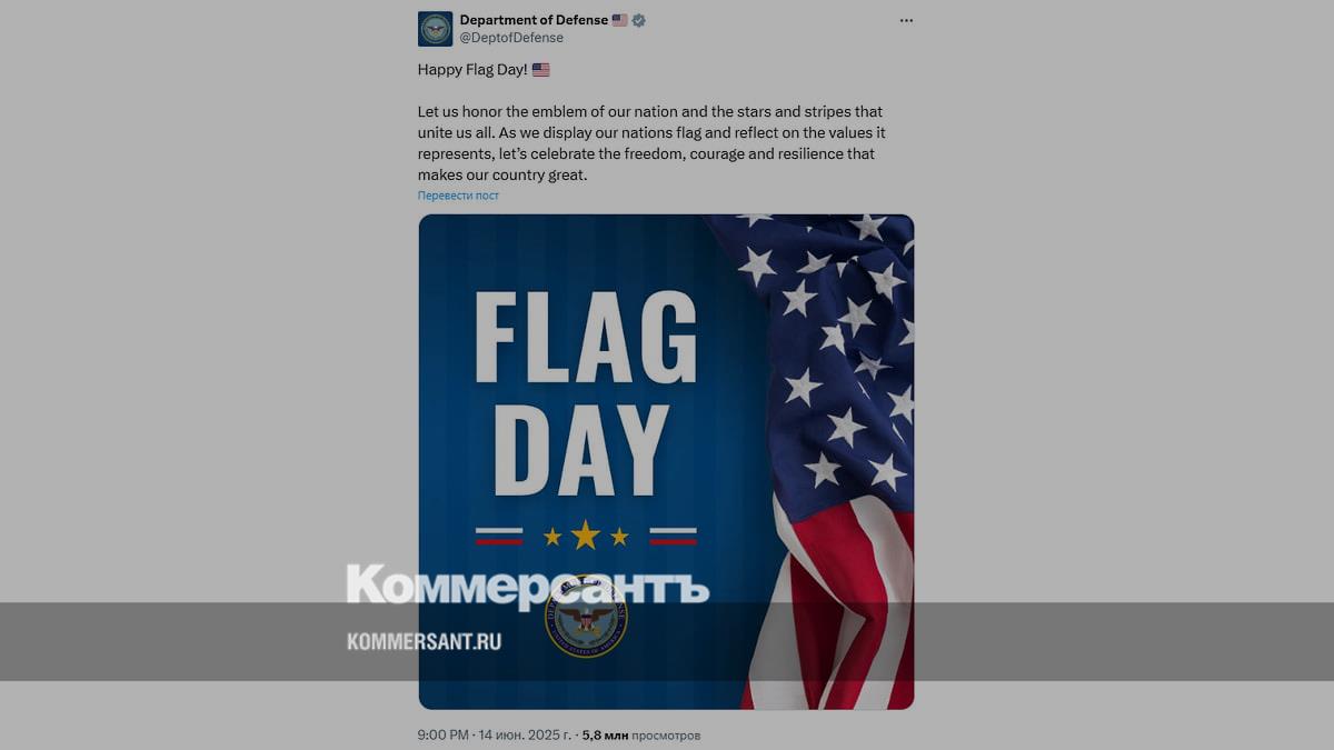Министерство обороны США опубликовало в соцсети X поздравление с Днем флага, на котором пользователи заметили два российских триколора. На изображении под надписью «День флага» размещены три золотые звезды, по бокам от которых видны бело-сине-красные флаги.