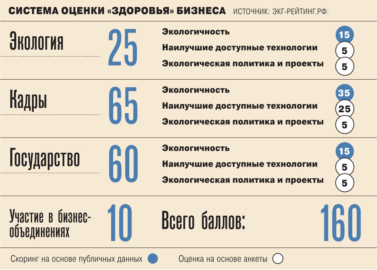 Экология — 15 баллов. Ключевой показатель — уровень экологических платежей, включая штрафы и компенсации за вред, нанесенный окружающей среде. Чем ниже эти расходы относительно выручки, тем выше балл.