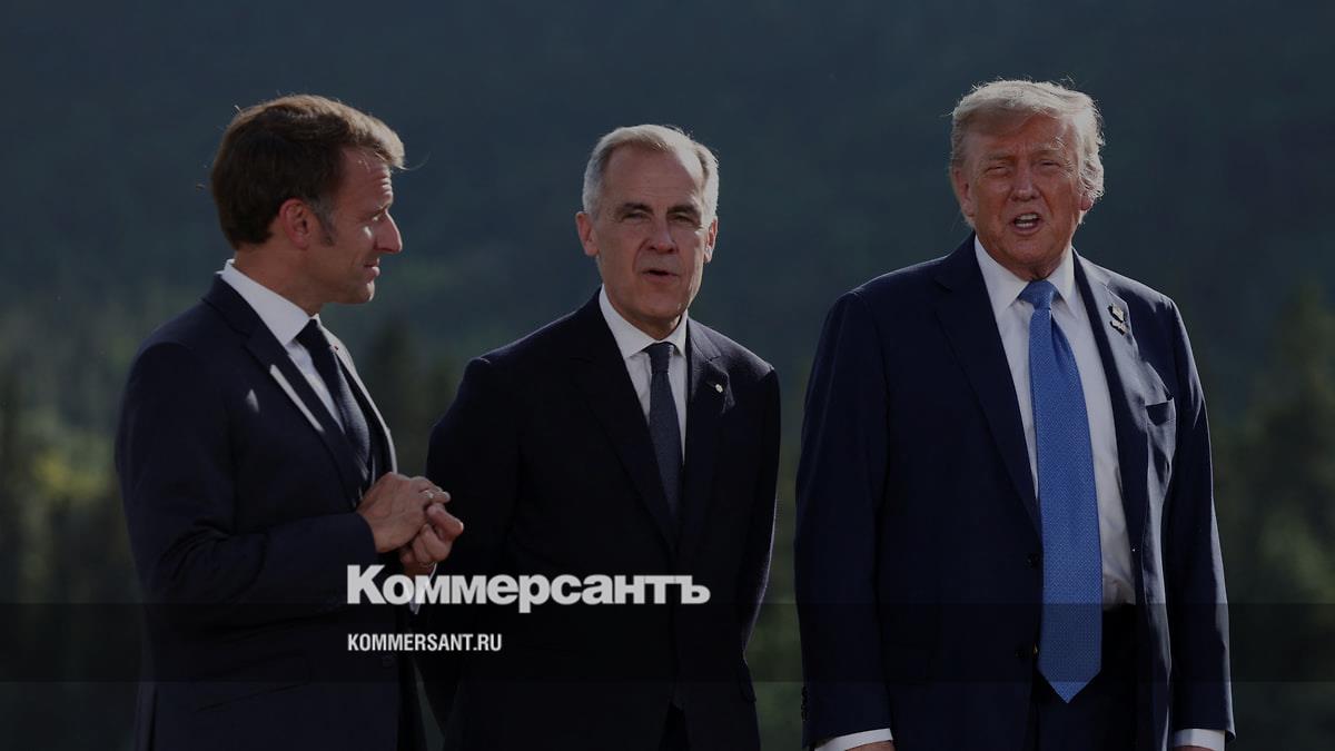Президент Франции Эмманюэль Макрон, премьер-министр Канады Марк Карни и президент США Дональд Трамп