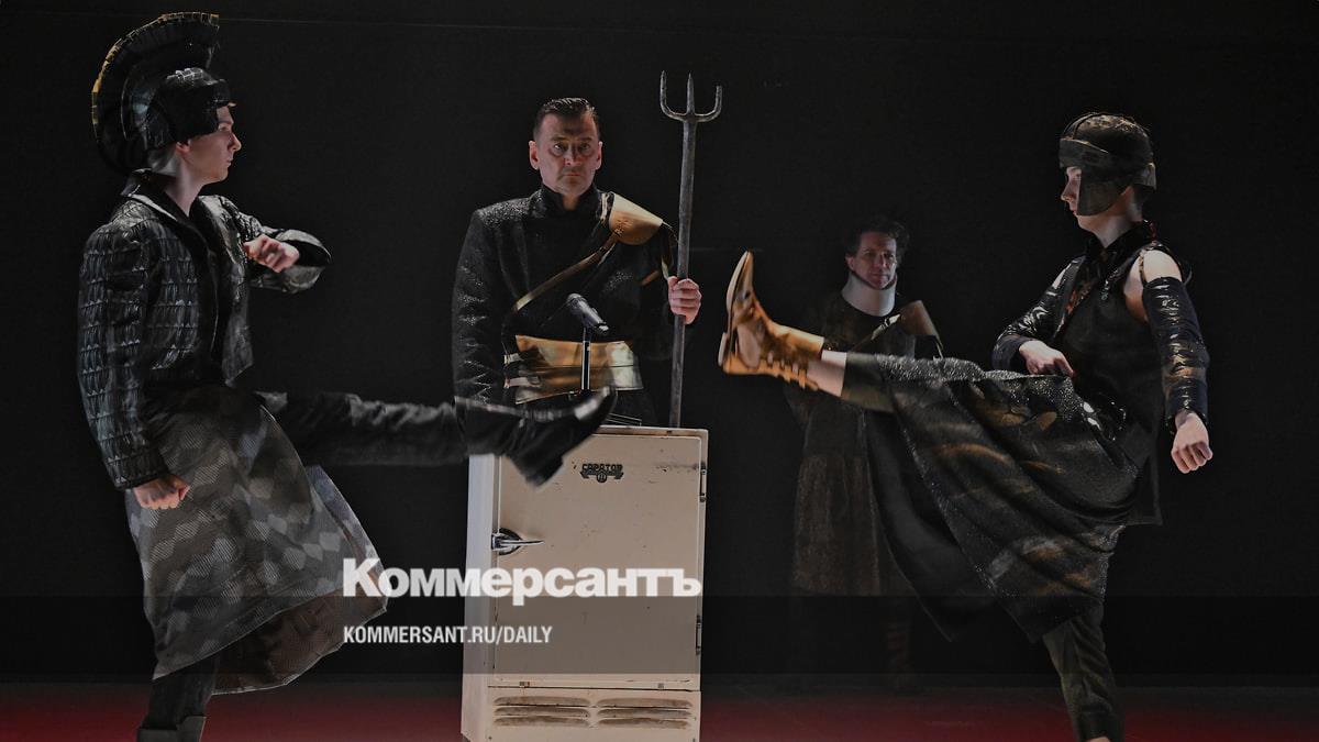 Взаимное любовное томление в спектакле иронично обыгрывают в неожиданных вставных музыкальных номерах на хиты 1980-х и 1990-х «Позвони мне, позвони» и «Я хочу быть с тобой». Режиссер вообще не боится эклектики: советский холодильник и мобильники тут сочетаются с капителями античных колонн, на которых покоится сцена, словно крыша ушедшего под землю Парфенона. А «эписодии» объявляет с балкона персонаж, заменяющий древнегреческий хор. Сергей Шадрин в костюме скорее мольеровского времени предстает здесь то ли местным божком, то ли богом театра — он режиссирует ход действия, иногда обрывая его в самый интересный момент к неудовольствию артистов. Они тут работают открытым приемом и не дают забыть, что мы в театре. «Это очень трудная роль»,— доверительно сообщает кто-то из них время от времени. А порой зрители становятся участниками интерактива: голосуют, например, давать ли слово женщинам в совете.