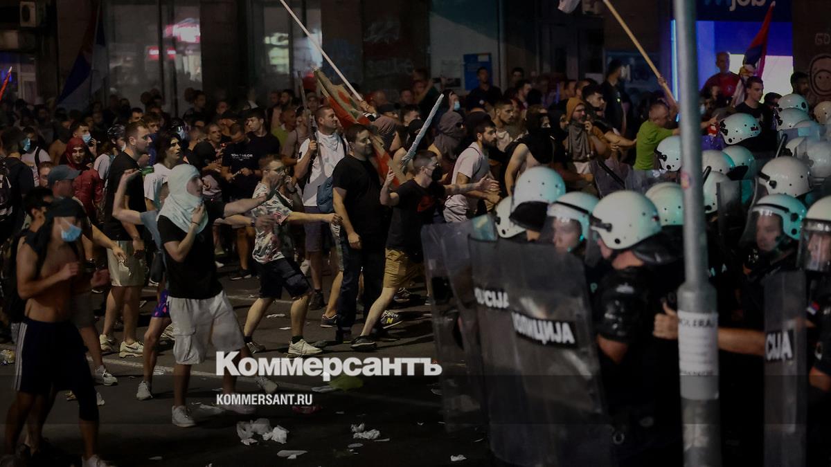 Во время протестов в Белграде произошли столкновения протестующих и полиции. Шестеро полицейских и двое граждан получили травмы. Из-за столкновений были задержаны десятки человек, сообщил начальник полиции Драган Васильевич. Он не назвал точное число задержанных.