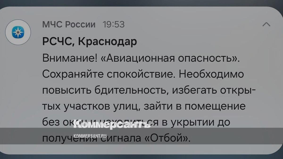 Вечером 5 июля в Краснодаре и крае объявили авиационную опасность. Предупреждение жители региона получили от РСЧС в 19:53. Сообщения поступили через официальное приложение МЧС России.
