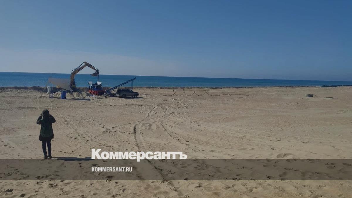 Работы выполняются в два этапа: сначала фронтальные погрузчики разравнивают вал, затем песок тщательно просеивают с использованием спецтехники.