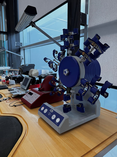На самом деле, Legacy Craft Service, с которым «Коммерсантъ Стиль» удалось познакомиться изнутри, представляет собой миниатюрную часовую мануфактуру, оснащенную по последнему слову техники: высокоточные полировальные машины, гравировальные станки, лазерные установки и проч. Разумеется, часов «с нуля» здесь не сделают, но обслужат практически все существующие часы и ювелирные украшения. Запасу компонентов, унаследованному от сервиса Richemont, можно только позавидовать, а уровень оснащения и допуск сотрудников позволяет производить, причем с предоставлением собственной гарантии, любые работы: от самых простых — замены батареек в кварцевых часах и ремонта застежек ювелирных украшений — до самых сложных вроде обслуживания хронографов, вечных календарей и турбийонов (минутные репетиры клиентам все-таки придется отправить производителю). Мастера Legacy Craft Service работают по регламентам и технологическим картам брендов.