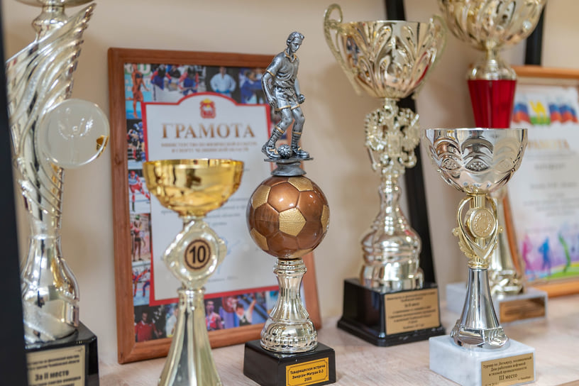 Экспозиция включает кубки и медали по футболу, хоккею, волейболу, многоборью ГТО, плаванию, шахматам, легкоатлетическим кроссам, пулевой стрельбе и керлингу. Самая ранняя награда датируется 2001 годом — это серебряная тарелка за призовое место в турнире по мини-футболу, а недавним пополнением коллекции стал кубок за третье место в соревнованиях по плаванию среди работников предприятий Челябинской области. Всего же экспозиция на сегодняшний день насчитывает более шестидесяти спортивных трофеев.
