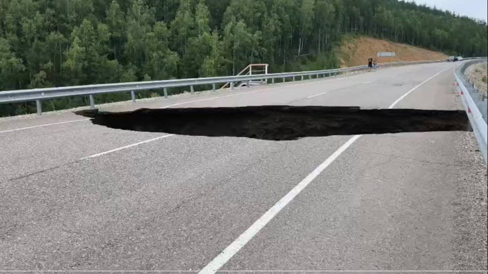 Участок федеральной автотрассы «Лена» перекрыт из-за провала дорожного полотна