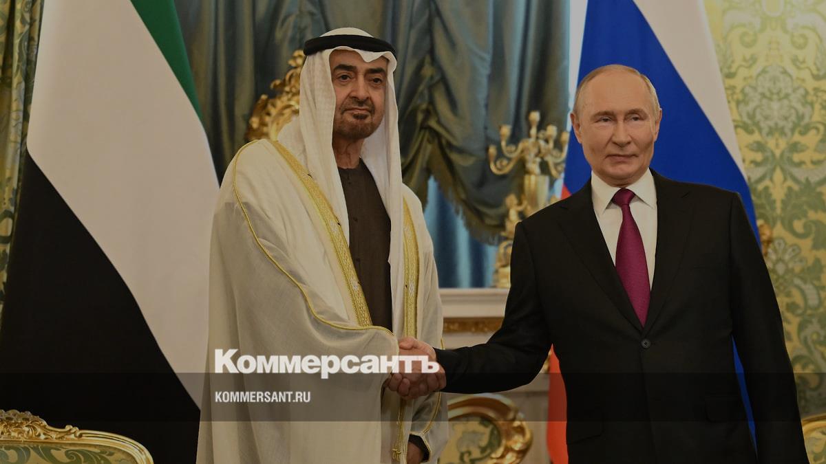 Президент России Владимир Путин начал переговоры с президентом Объединенных Арабских Эмиратов (ОАЭ) Мухаммедом бен Заид Аль Нахайяном. Встреча проходит в Кремле.