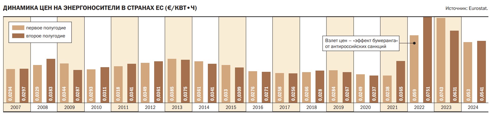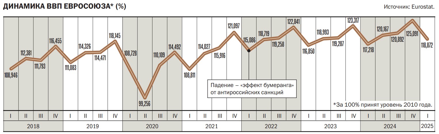 Таким образом, разрушительное воздействие на Европу ее же санкций — «эффект бумеранга» — неоспорим. Экономический рост в еврозоне, в которую входят основные экономики Европейского союза, переживал период застоя в течение пяти кварталов с начала 2023 года по середину 2024 года.