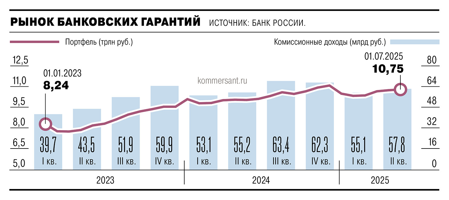 Эксперты поясняют, что рынок банковских гарантий тесно связан с рынком кредитования, на котором наблюдается охлаждение на фоне высоких ставок. По данным ЦБ, за полгода портфель корпоративных кредитов снизился на 0,5%. При этом регулятор только в июне начал снижение ключевой ставки, которая до этого держалась семь месяцев на рекордном уровне 21%. «В целом объемы гарантий зависят от общей экономической ситуации, поэтому нынешняя динамика отражает некоторое замедление деловой активности. По мере смягчения денежно-кредитной политики и удешевления кредитования будут расти и выдачи гарантий»,— отмечает председатель комитета Госдумы по финансовому рынку Анатолий Аксаков.