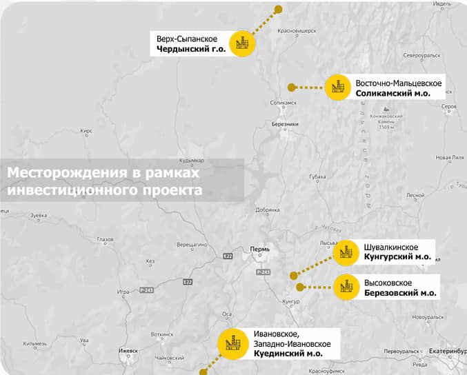 Планируется, что в программу развития войдут Высоковское, Верх-Сыпанское, Восточно-Мальцевское, Шувалкинское, Западно-Ивановское и Ивановское месторождения. Проект планируется реализовать до 2028 года. Общий объем инвестиций оценивается в 1,29 млрд руб. В качестве социальной инициативы инвестор направит еще не менее 77 млн рублей на финансирование мероприятий социального характера на территории Пермского края.