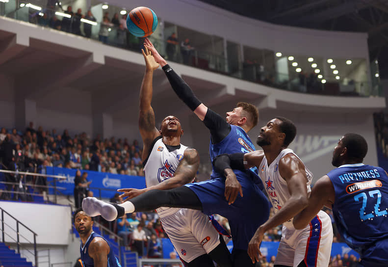 «Зенит» тем не менее и в ослабленном составе смотрелся более чем прилично. Отчасти благодаря тому, что у петербуржцев очень неплохо получались дальние броски (скажем, Александр Щербенёв до большого перерыва выбросил четыре попытки и три из них достигли цели). Отчасти за счет уверенной игры Алекса Пойтресса. Зенитовский «большой» крайне редко промахивался. Что касается ЦСКА, то какой-то один герой у команды не вырисовывался. Разве что чуть выделялся Антон Астапкович, но не столько попаданиями, сколько выверенными передачами. Но герой ЦСКА и не требовался. Армейская машина и без него работала без особых сбоев. Впрочем, и на полную мощность она не выходила. Как следствие, лидер в этом матче менялся с пугающей частотой (всего за матч таких смен было больше двух десятков).