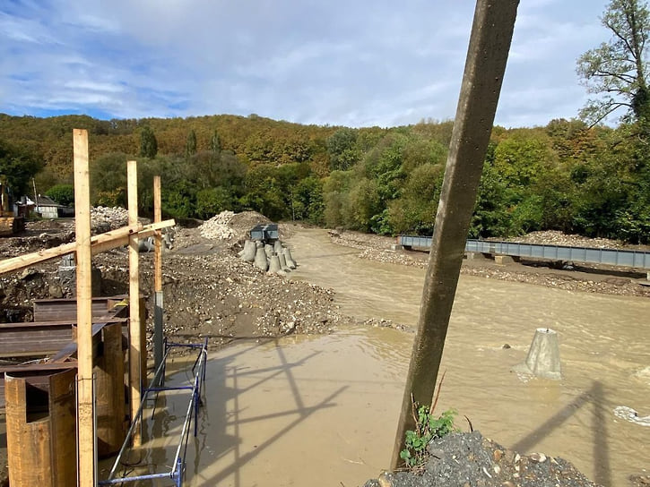 В селе Молдавановка Туапсинского округа после обильных дождей размыло временную переправу через реку Шапсухо. Как сообщил глава округа Сергей Бойко в своем Telegram-канале, движение по мосту планируют восстановить до конца дня 12 октября.