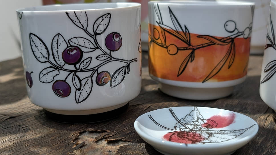 Художники предложили свежий взгляд на традиционные уральские темы. В коллекции Карины Шелеповой «Реки Урала» использована сложная техника барельефа по фарфоровой стенке, а серия кружек Светланы Запарий «Любимые с детства ягодки» сочетает цифровую печать, золотой ажур и ручную роспись с изображениями облепихи, черники и малины.