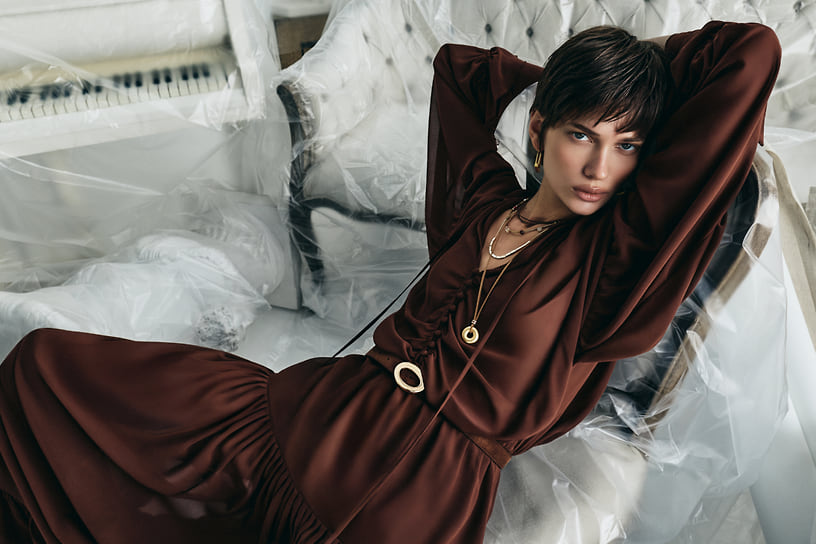 Новая линия Studio российского бренда одежды Love Republic — это капсула, в которой соединились бохо-стиль и переливающиеся фактуры и гипертрофированные формы начала 1980-х. В коллекцию вошли несколько шуб (короткая и длинная под лису), меховые аксессуары, платье макси, юбка-баллон, объемные джинсы. Цветовая гамма коллекции — все оттенки карамели, глубокий изумрудный и насыщенный рубиновый.