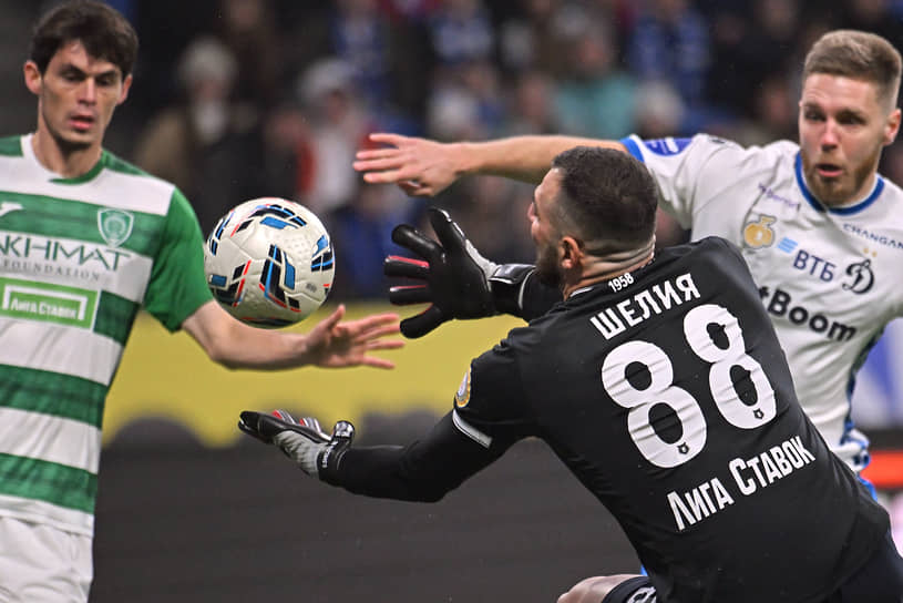 «Динамо» пока отстает от ведущих клубов чемпионата и могло подняться только на седьмое место, но на его пути в 12-м туре стоял ставший весьма грозным под руководством Станислава Черчесова «Ахмат». Их противостояние с главным тренером бело-голубых Валерием Карпиным само по себе вызывало большой интерес, ведь это, наверное, сейчас два самых авторитетных российских специалиста. Активнее начали матч москвичи, которые проломили на стандарте несколько потерявшую в мощи из-за дисквалификации Усмана Ндонга грозненскую оборону. Эль-Мехди Маухуб, Иван Сергеев и Максим Осипенко общими усилиями запихали мяч в сетку, а гол в итоге записали на второго. Правда, через пять минут преимущество хозяев испарилось. С ударом Максима Самородова дебютировавший в премьер-лиге голкипер Курбан Расулов справился, а вот Георгий Мелкадзе бил уже в пустой створ. Более того, по ходу первого тайма в ворота 19-летнего динамовца поставили пенальти после довольно легковесного фола Бителло на Максиме Сидорове. Однако дрогнул отнюдь не Расулов, а Лечи Садулаев, засадивший куда-то по воробьям.