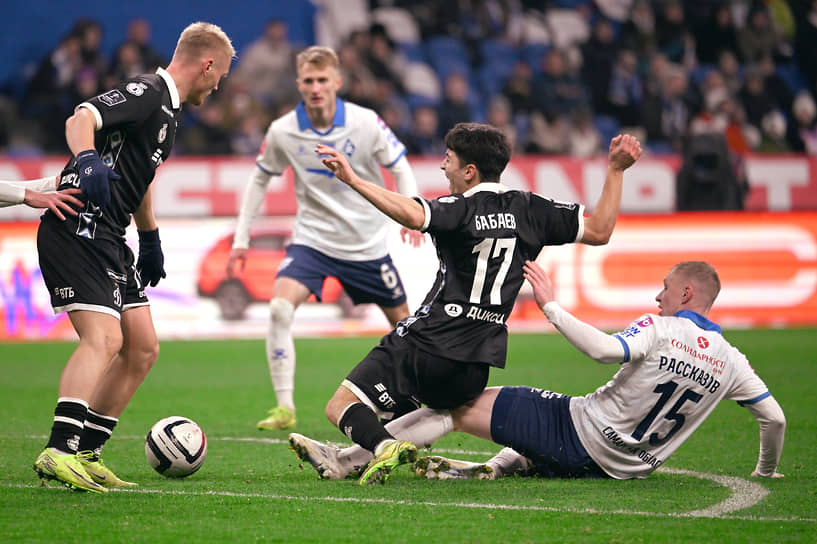 Абсолютно неожиданной оказалась и комбинация москвичей в середине первого тайма, которая закончилась эффектнейшим голом. Даниил Фомин отдал Тюкавину, он сделал наброс на партнера по нападению Ульви Бабаева, а тот с лета вонзил мяч под перекладину, огорчив свой бывший клуб, в котором провел прошлый сезон на правах аренды. Вскоре после передачи Окишора Бабаев попробовал снова нарисовать красоту, но его удар с разворота пришелся в Кокарева. «Крылья» до перерыва организовали одну по-настоящему острую атаку, когда Кирилл Печенин простреливал на Владимира Игнатенко и защитник «Динамо» Роберто Фернандес успел снять мяч у него с ноги. Если бы не парагваец, форвард гостей наверняка поразил бы ворота Игоря Лещука.