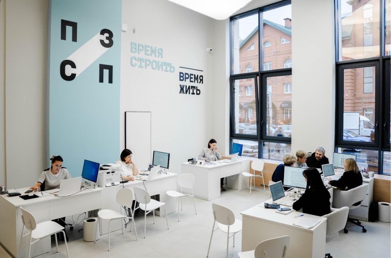 В новом офисе ПЗСП менеджеры обеспечивают индивидуальный подход, а зона ожидания с кофе и чаем позволяет клиентам удобно и без суеты ознакомиться с актуальной информацией и новыми проектами компании. Для более приватного и детального обсуждения вариантов покупки доступны переговорные комнаты, а для детей организован игровой уголок.