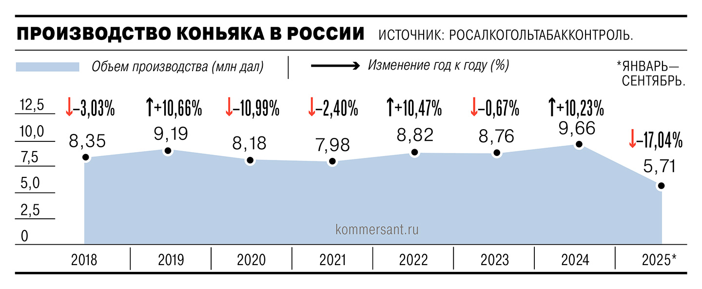 Дополнительным стимулом помимо сезонного роста спроса для производителей служит увеличение акцизов. Согласно проекту поправок к Налоговому кодексу, с 1 января 2026 года ставка для крепкого алкоголя составит 824 руб. за литр спирта, увеличившись на 11,4% год к году. Эта коррекция превосходит изначально запланированное повышение. Предполагалось, что ставка составит 770 руб. за литр спирта. Сейчас рынок ждет повышения и минимальных розничных цен (МРЦ) на коньяк.